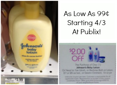 There is a $2/1 Johnson & Johnson Baby Products Publix coupon in the Oh Baby booklet (valid starting 4/3), and there will be a $1/1 Johnson & Johnson Baby Products manufacturer’s coupon in the upcoming Health & Beauty Advantage Buy Flyer. That means that starting next Thursday, 4/3, you can save up to $3 off each item!
