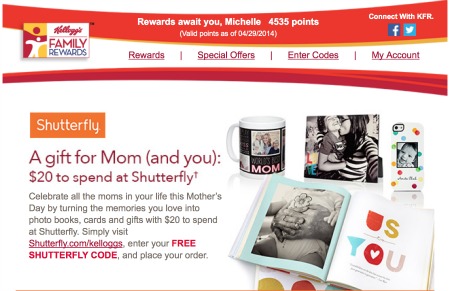 Check your email as you may have a big $20 credit to Shutterfly from the folks at Kellogg’s Family Rewards. Might be a little late to do a book for Mother’s Day but Father’s Day is just around the corner. Grab cards, photo books and more with that nice little freebie!