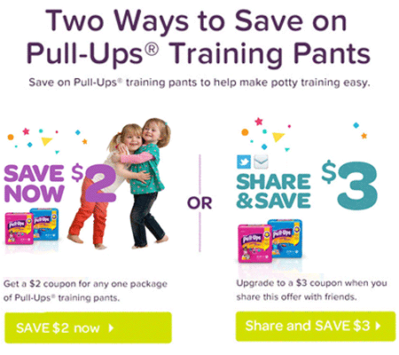 Wow – there is a fantastic new Huggies Pull Ups coupon that you guys with little ones might want to grab. The coupon will save you $3 off a pack if you share (if not you get at $2 coupon).