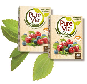 Not sure what Pure Via is all about? Pure Via is an all-natural, Non-GMO, zero calorie sweetener made from the stevia plant. You can use it wherever you’d use sugar. Each packet of Pure Via is equal to two teaspoons of sugar. It is a natural alternative to sugar and can be enjoyed by anyone who wants indulgent taste without the calories. Pure Via can be used in hot and cold beverages, sprinkled on fruit or oatmeal and even to cook and bake with.