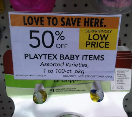 Playtex Baby Items, 50% Off: Regular Prices start $3.89+ (Lil Gripper)As low as $1.95 with discount.